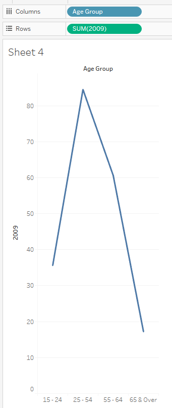 Comment: Age group is a categorical datatype and thus line chart may not be the best way to represent it.
